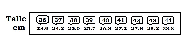 La tabla de talles también la puedes ver al ingresar a cada modelo de calzado.